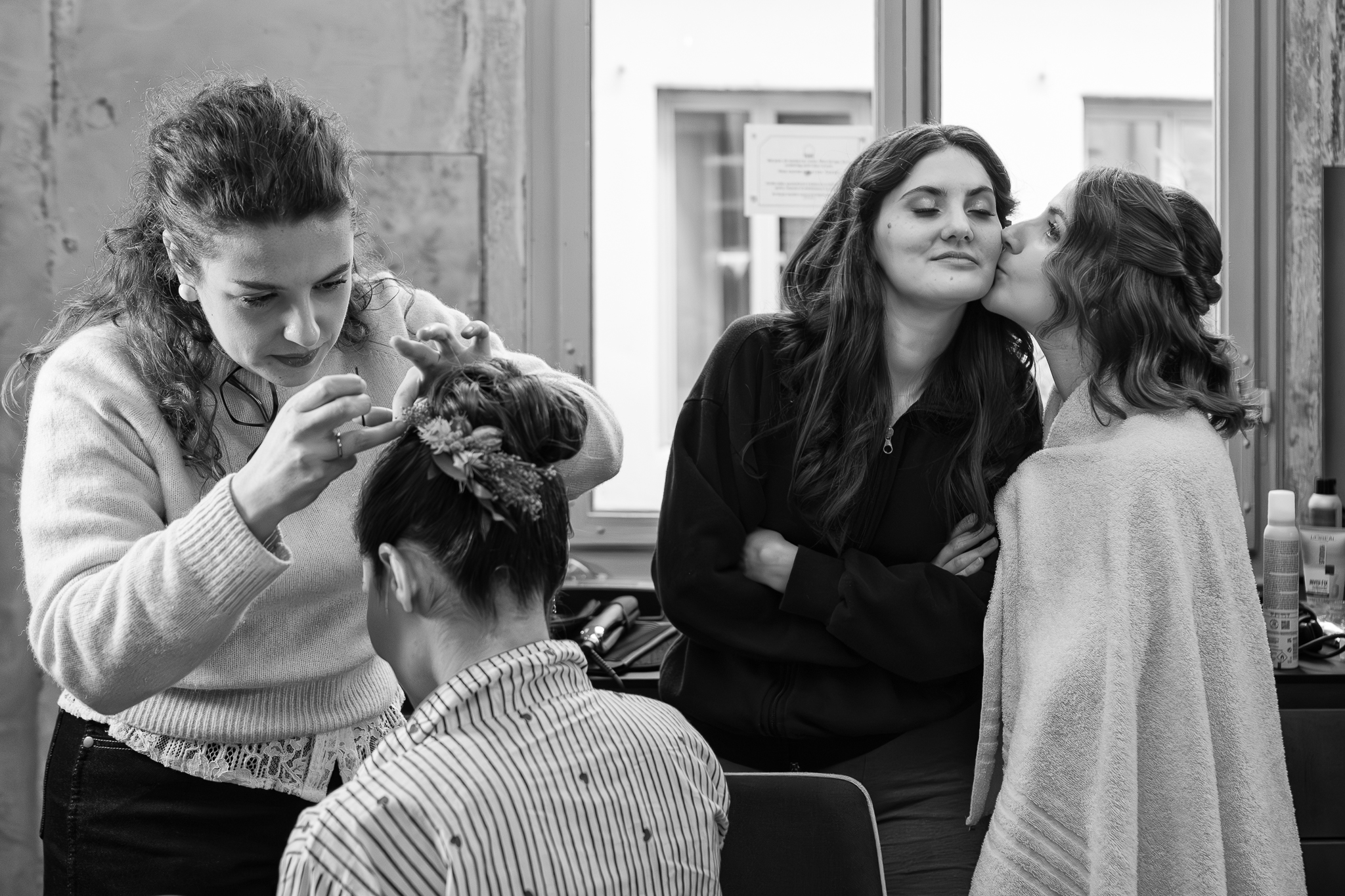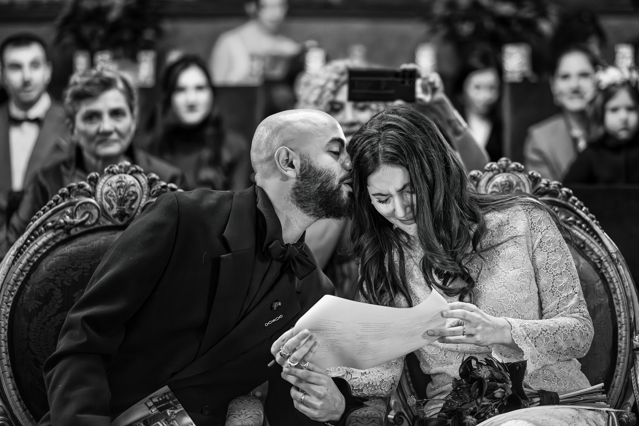 Elisa spent the morning in a warm and welcoming apartment, surrounded by close friends and family. The atmosphere was calm at first, quiet and intimate. As she began writing her vows, emotions slowly started to rise. You could feel the tension building : not in a negative way, but in that honest, human way that comes when something truly matters.