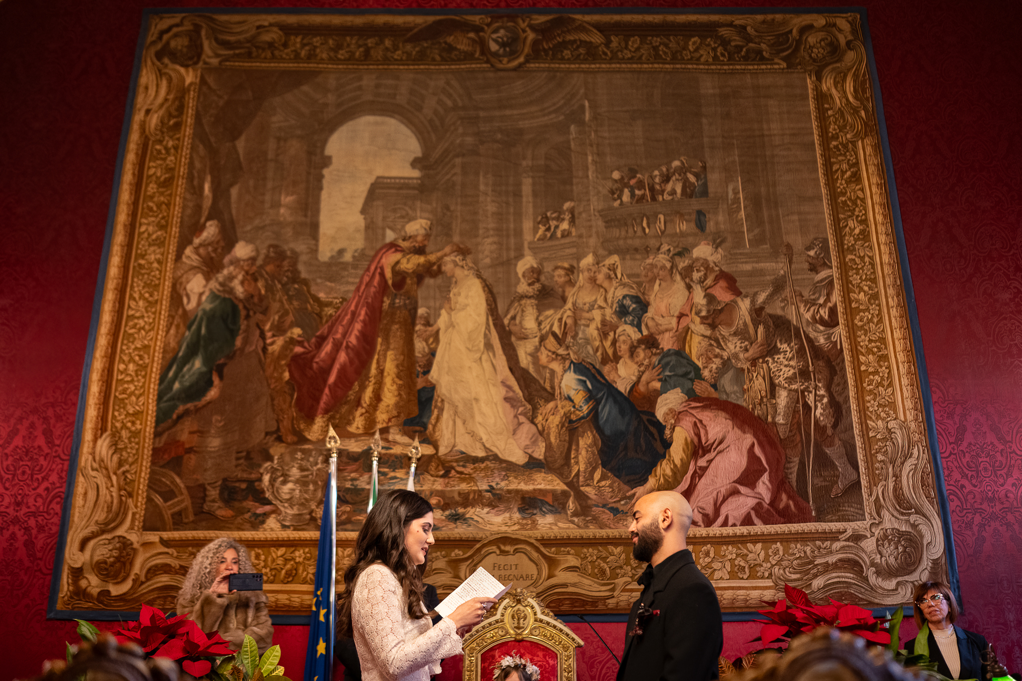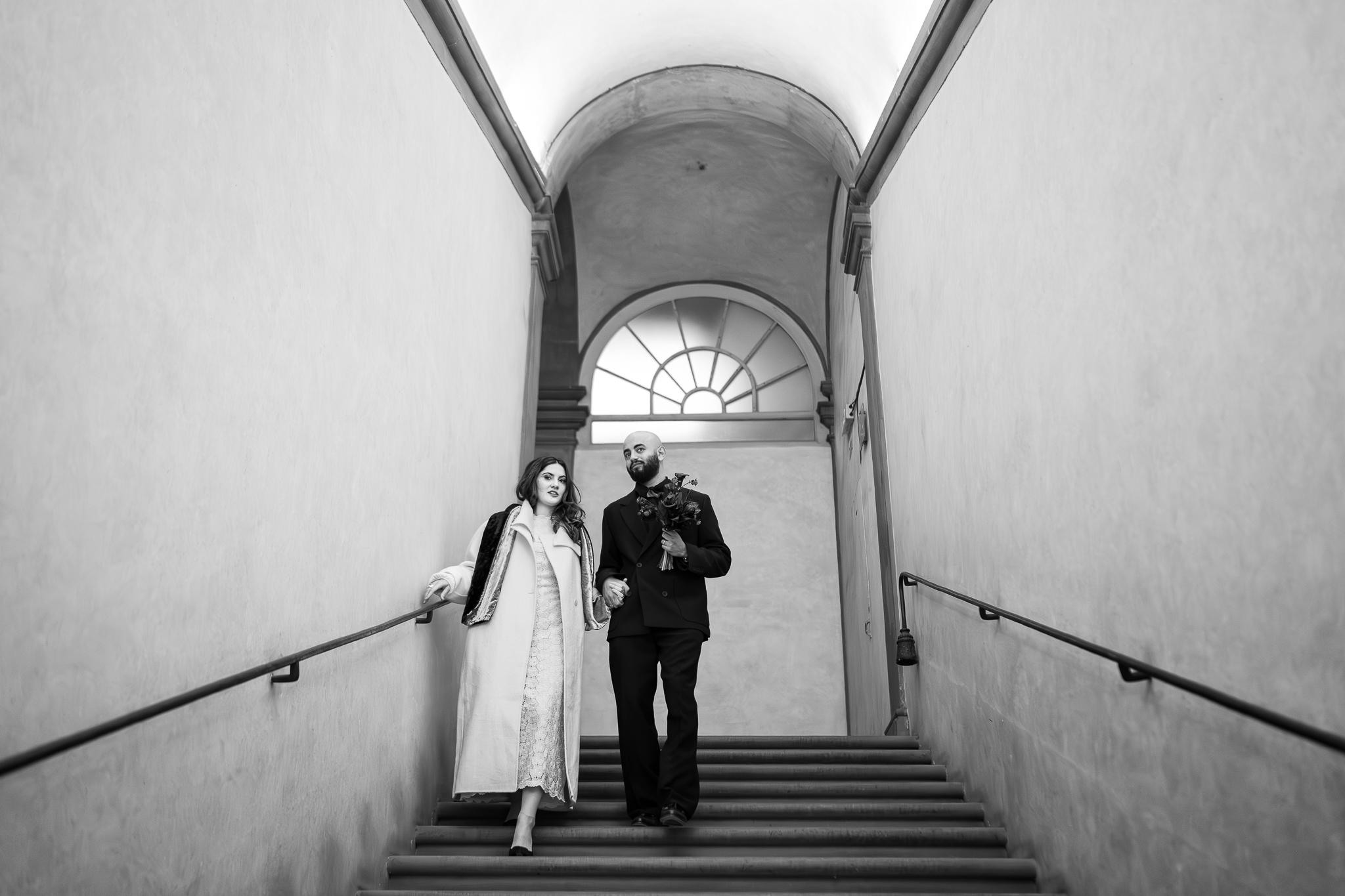 The ceremony took place inside the iconic Palazzo Vecchio, one of the most historic locations for a civil destination wedding in Florence. A place filled with history, yet incredibly alive.