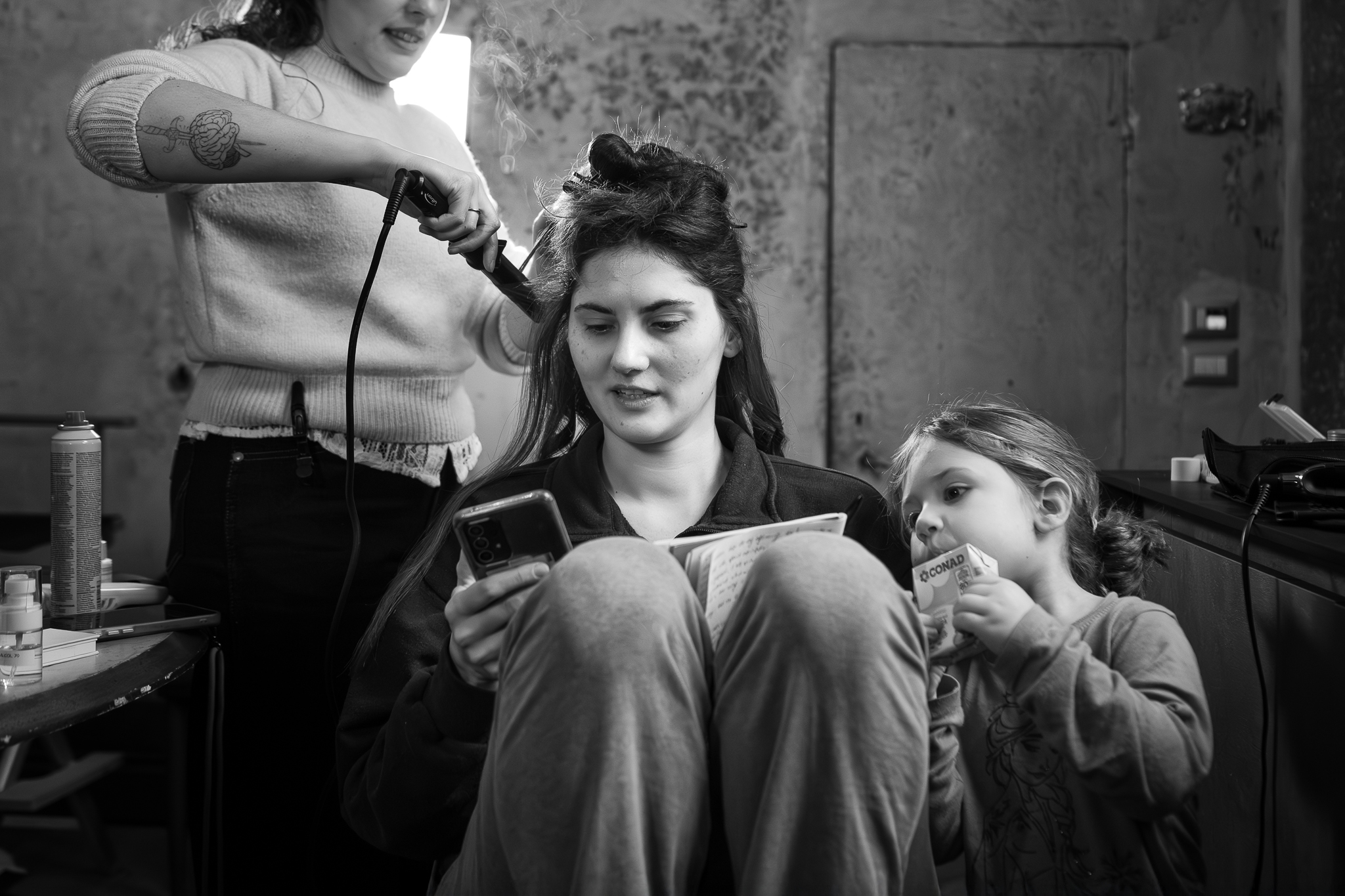 The people around her played an important role. They lightened the mood, brought smiles, small laughs, and helped transform that growing emotion into a relaxed and supportive atmosphere. The light inside the apartment was warm and soft, wrapping everything in a timeless feeling : the kind of light that only Florence seems to offer, filtered through historic windows and textured walls.